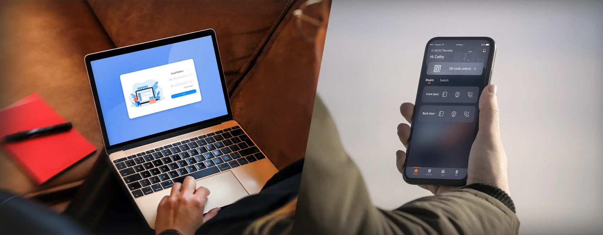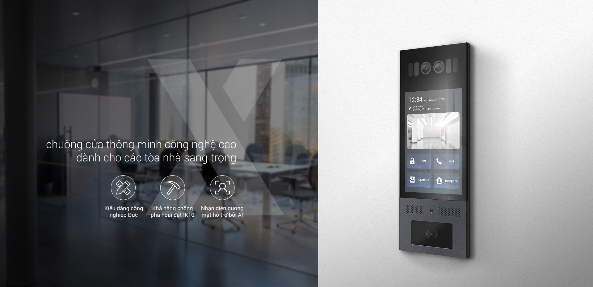 • Videoanrufe, Gesichtserkennung, Karte/QR, Besucher- & Lieferantenmanagement