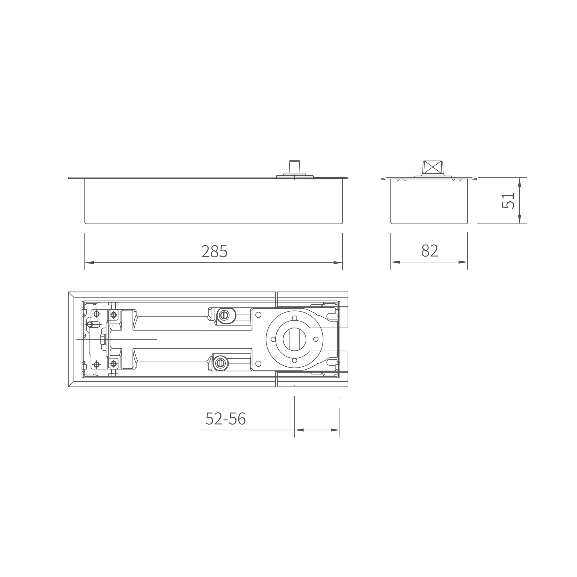 • Chiều rộng cửa ≤ 1100 mm, trọng lượng cửa ≤ 150 kg, góc mở tối đa lên đến 180°